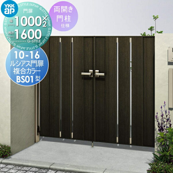 形材門扉 YKKap YKK 電気錠付ルシアス 門扉BS01型 両開きセット 門柱仕様 10-16 複合カラー プッシュプル錠4型(鍵なし) 扉1枚寸法1000×1600 形材門扉 本体・取っ手(取手)セット