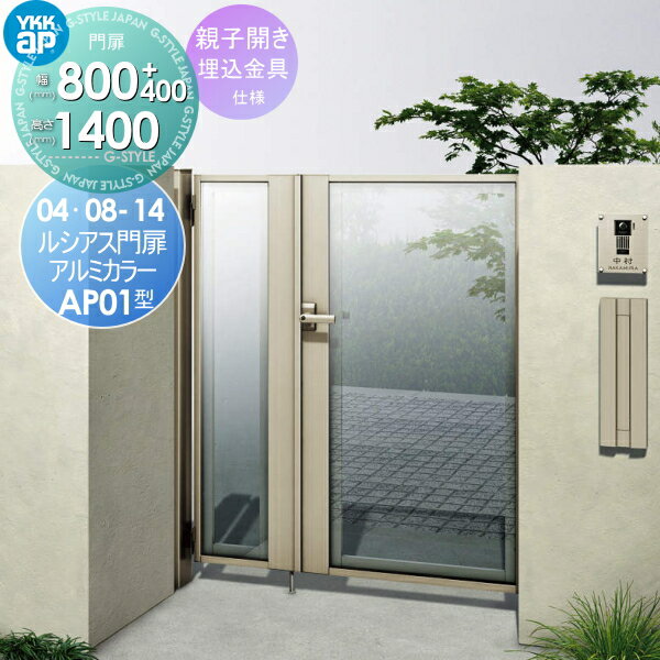 形材門扉 YKKap YKK 電気錠付ルシアス 門扉AP01型 親子開きセット 埋込金具仕様 04・08-14 アルミカラー プッシュプル錠4型(鍵なし) 扉1枚寸法400・800×1400 形材門扉 本体・取っ手(取手)セット