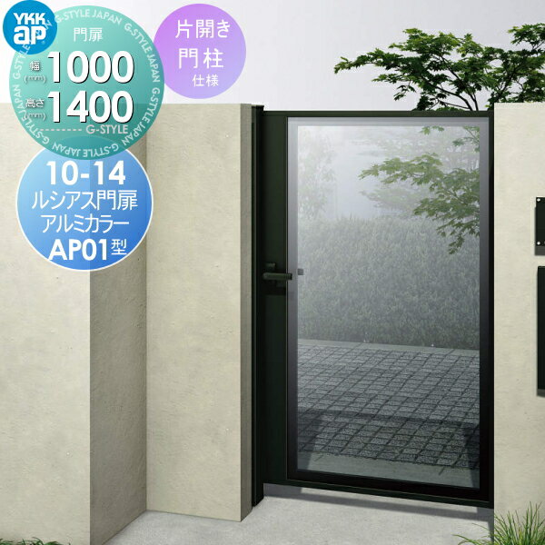 形材門扉 YKKap YKK 電気錠付ルシアス 門扉AP01型 片開きセット 門柱仕様 10-14 アルミカラー プッシュプル錠4型(鍵なし) 扉1枚寸法1000×1400 形材門扉 本体・取っ手(取手)セット
