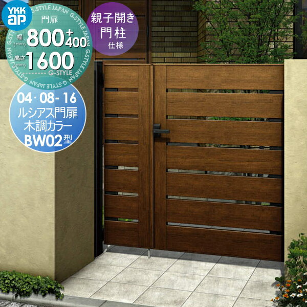 形材門扉 YKKap YKK 電気錠付ルシアス 門扉BW02型 親子開きセット 門柱仕様 04・08-16 複合カラー プッシュプル錠4型(鍵なし) 扉1枚寸法400・800×1600 形材門扉 本体・取っ手(取手)セット