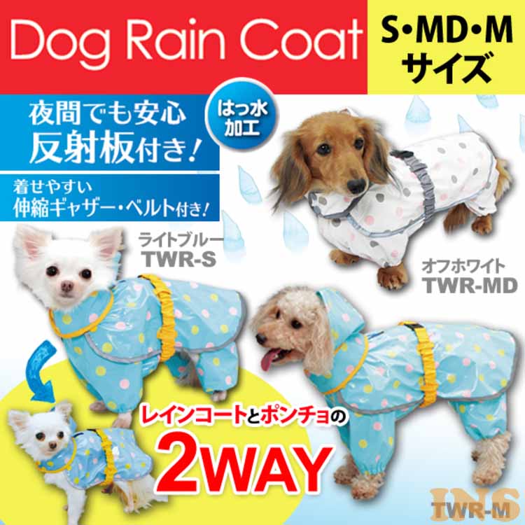 犬用レインコート(小型犬用) TWR-S・TWR-MD・TWR-M ライトブルー・オフホワイト[レインコート 雨具 犬用 雨合羽 雨ガッパ ウェア ポンチョ ペット用 足つき]